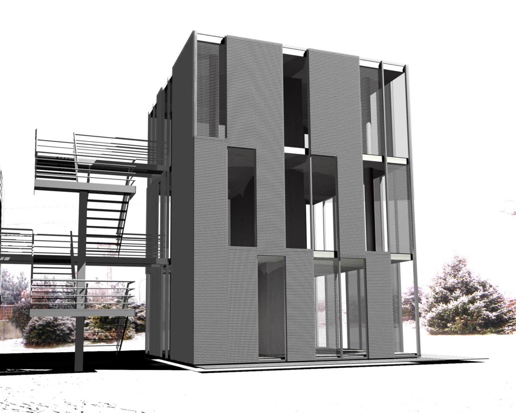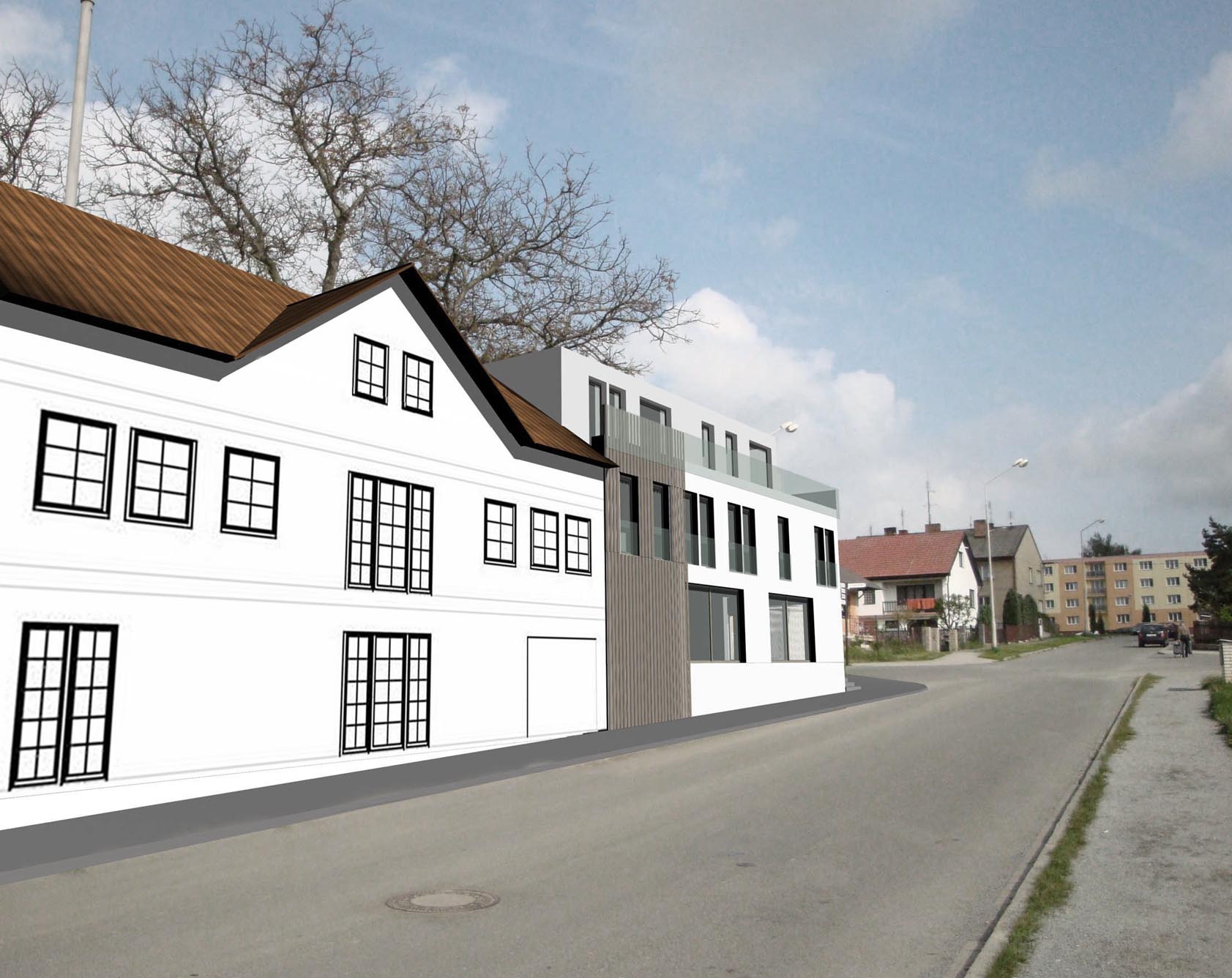 KŘESÍN - studie přístavby k rodinnému domu se třemi bytovými jednotkami. autor: Marta Vlčková, projekt 2006, nerealizováno