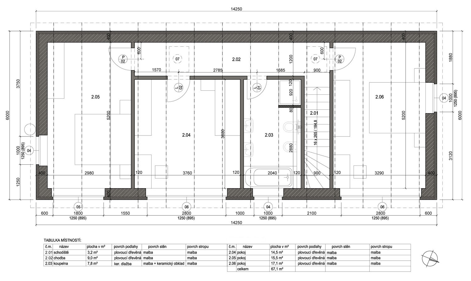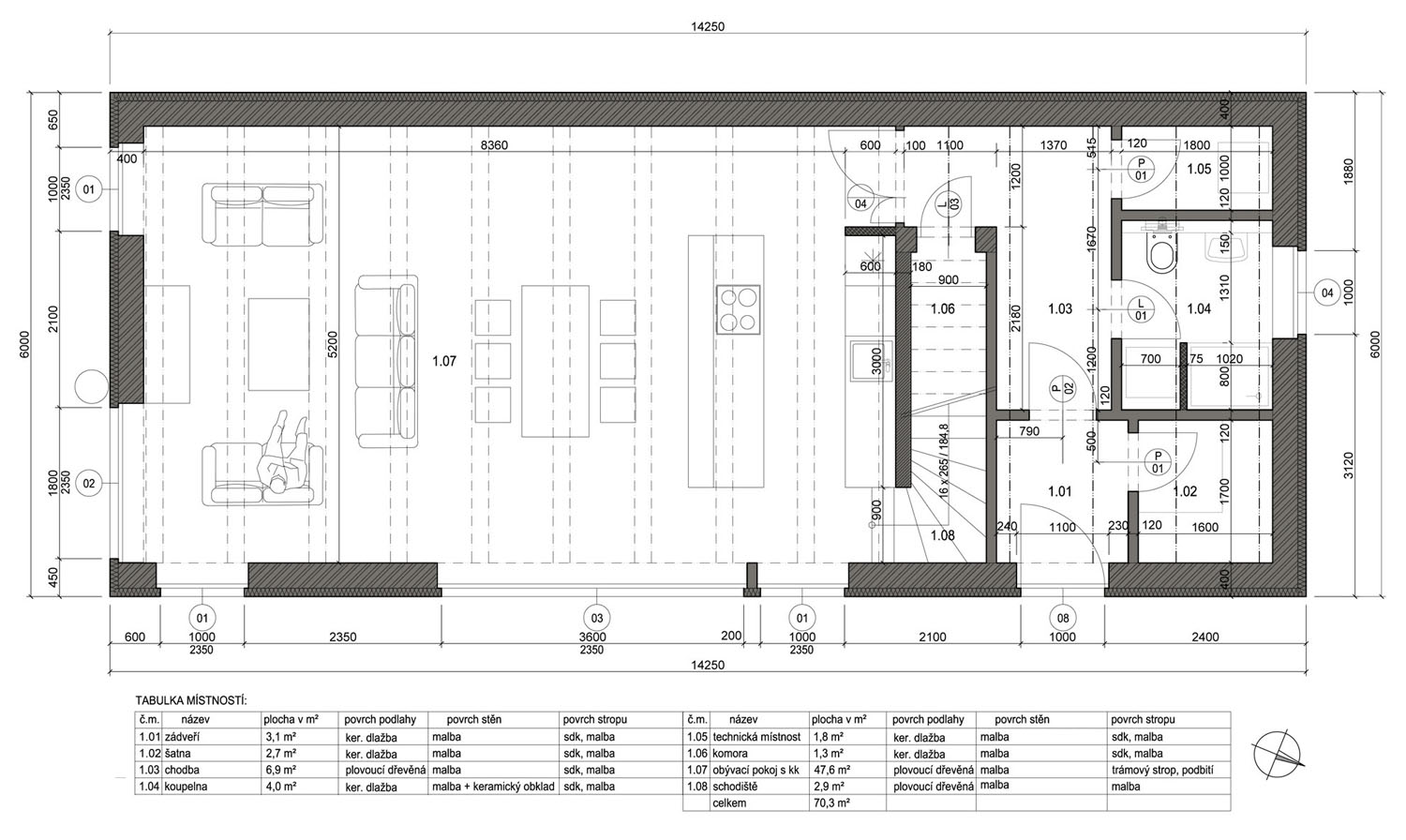 RD VTELNO U MOSTU - studie novostavby rodinného domu. autor: Marta Vlčková, projekt 2008, nerealizováno